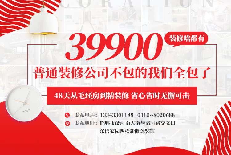 邯鄲市新概念裝飾公司是一家集裝飾設計、施工、主材、家具、配飾、售后一站式整體解決方案的裝飾公司。 公司推出“新概念完整家裝精裝修模式”適應了不同消費者需求,憑借其價錢透明、明白消費、完整售后服務的優(yōu)勢及省時、省力、省心、更省錢的理念,顛覆了傳統(tǒng)家裝...【詳細】